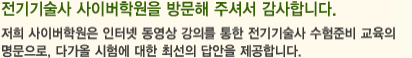 이런 점에서 제 교재와 강의로 차분히 실력을 다진 후 공부방에 있는 질문답변과 기출문제 등을 공부하시면 충분히 합격할 수 있을 것으로 확신합니다. 전기를 기본부터 착실히 공부해서 기술사에 도전하려는 많은 분들의 참여를 기다립니다.